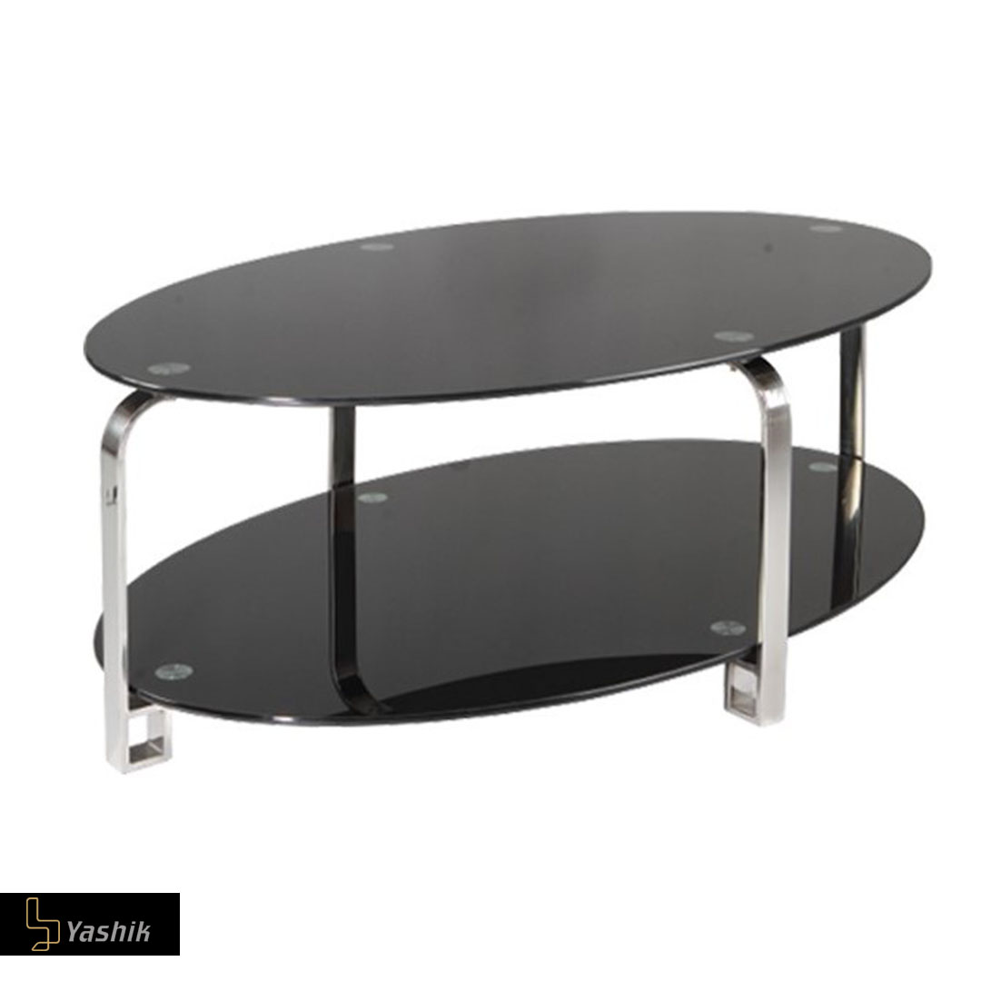 خانه مبلمان اداری میز اداری جلو مبلی جلو مبل Rah^B 960^شیشه مشکی 10میل^پایه استیل^دوطبقه^بیضی