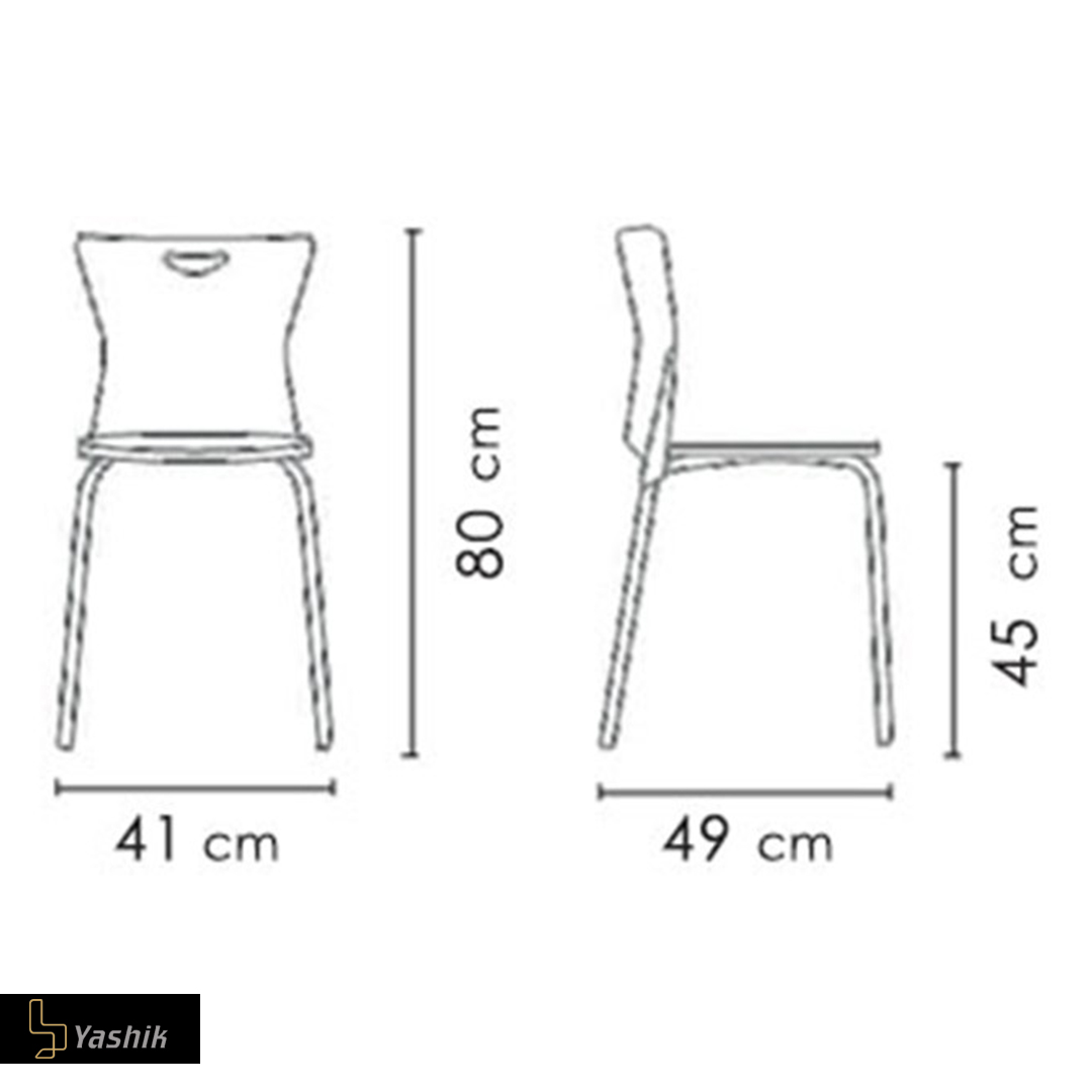 - دارای عرض 41، عمق 49، ارتفاع 80 سانتی متر و فاصله ارتفاع تا نشیمن 45 سانتی متر