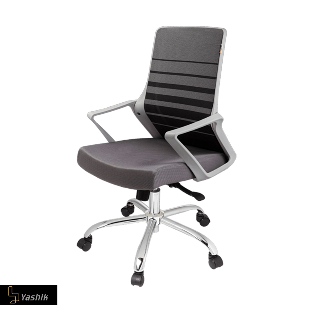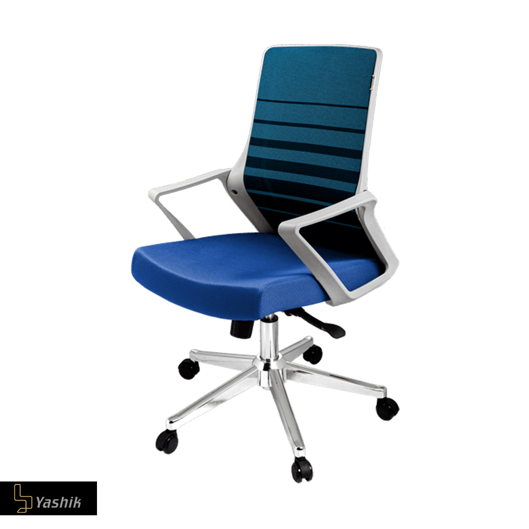 پایهی کروم براق و چرخهای نرم این مدل، حرکت روان بر سطوح اداری را بدون خط افتادن روی کف پوش تضمین میکند.