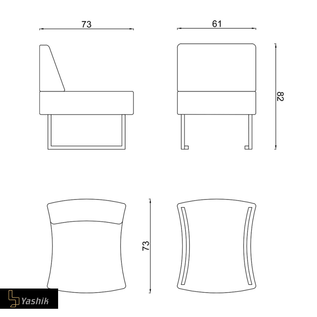 - ارتفاع 82 سانتی متر، عرض 73 سانتی متر و طول 61 سانتی متر