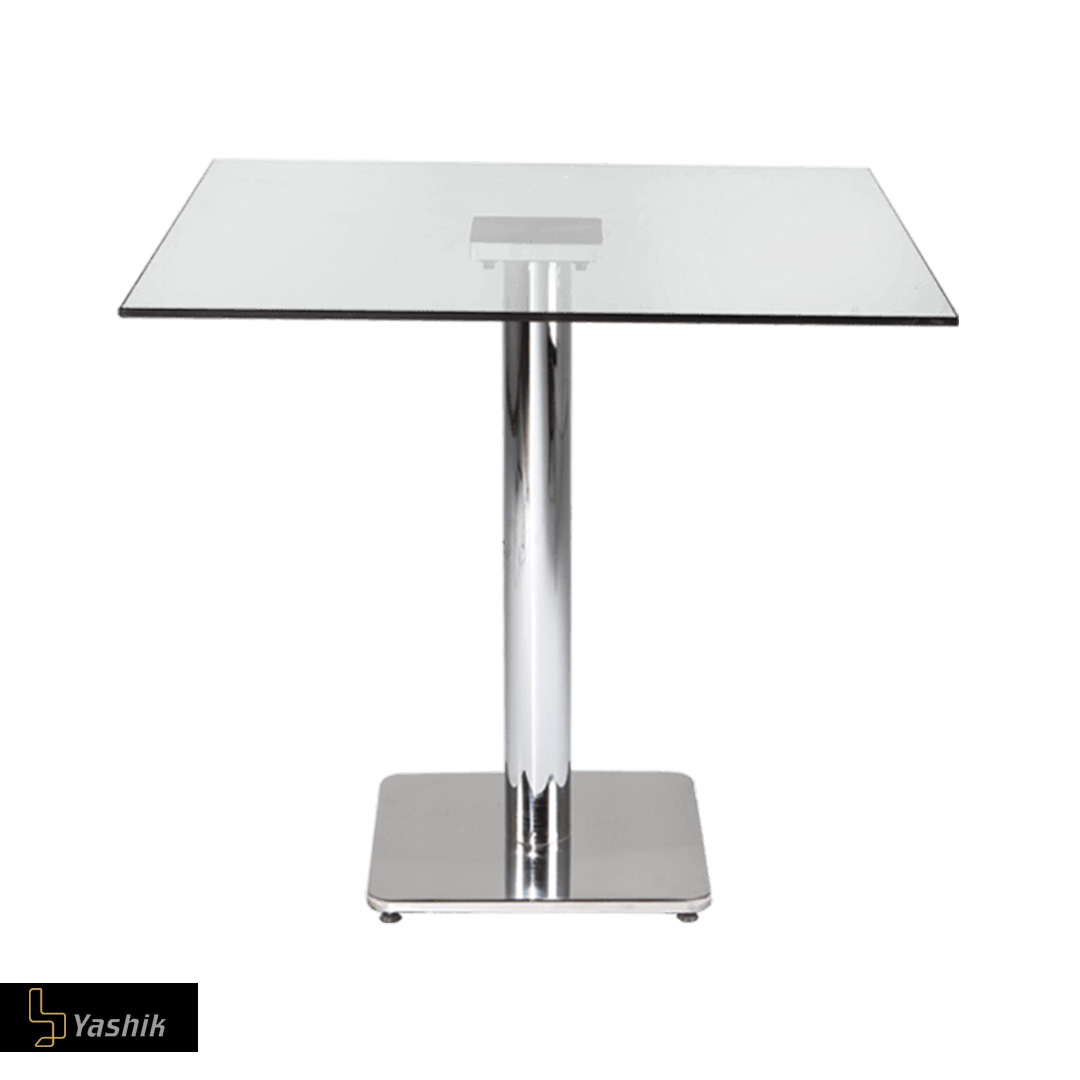 صفحه میز به شکل مربع و از شیشه ساده درجه یک با ابعاد 80×80 سانتیمتر و ضخامت 10 میلیمتر ساخته شده است. این صفحه به وسیله یک پک آلومینیومی گرد گروه 7000 با اندازه 14×14 سانتیمتر و ضخامت 15 میلیمتر، با استفاده از چسب UV به مرکز شیشه متصل شده است که اتصال بسیار محکم و مقاوم را تضمین میکند.